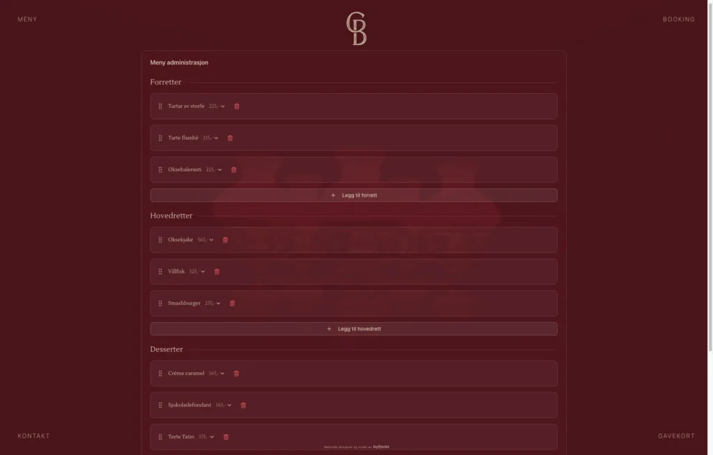 - 🛠 Skreddersydd dashboard for meny-endringer: Restaurantbransjen endrer seg raskt. Vi utviklet et eget administrasjonspanel der Godt Bresert enkelt kan:
